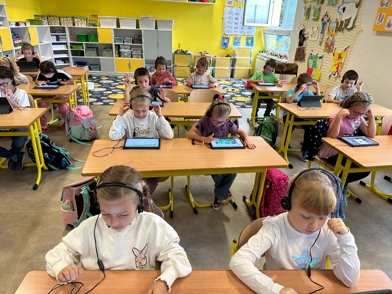 Naše prvňáčky čekalo tento týden netradiční učení – místo sešitů dostali do rukou tablety a